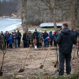 Flere end 100 deltagere var med, da KFUM-Spejderne tog første spadestik til fremtidens spejdercenter på Houens Odde.